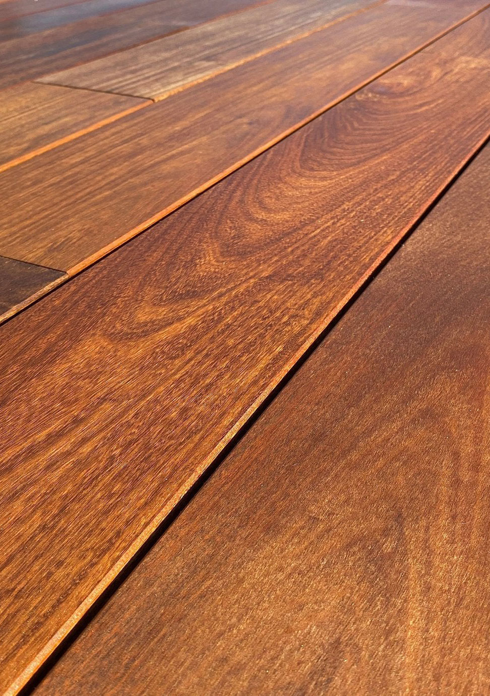 El resultado final es un suelo elegante y robusto, con espacio mínimo entre láminas, drenaje de agua óptimo, fácil de limpiar y que resiste al paso del tiempo sin deteriorarse.